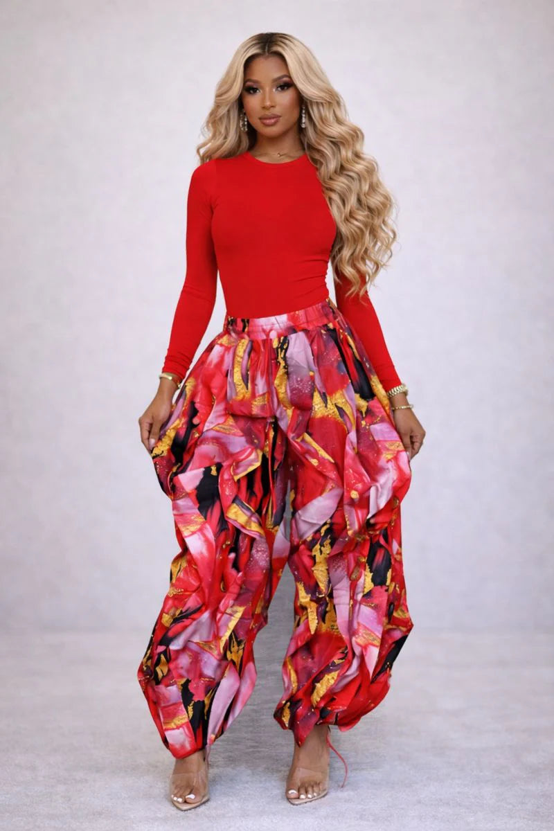 Printed Ruffle Pants